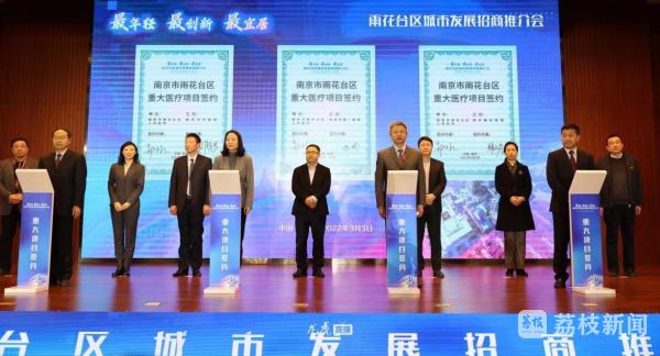 本次推介会由南京市雨花台区人民政府、南京市土地储备中心主办,雨花台区土地储备中心承办。现场,在重大项目签约环节,雨花台区分别与市级机关第一幼儿园、第二幼儿园、南京一中签订了名校名园战略合作协议,与南京市第一医院、南京市中医院、南京市脑科医院签订了名医院医联体合作协议,与南京市建设发展集团签订了长虹路城市更新项目合作协议。
