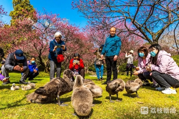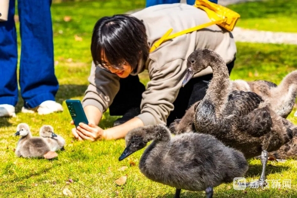 据了解,这些小黑天鹅们均为人工饲养,全部是虎年出生的“虎宝宝”,在面对游客时它们也“毫无惧色”,尽情地享受着属于它们的春日暖阳。