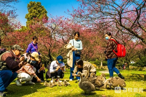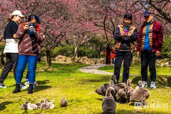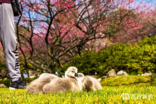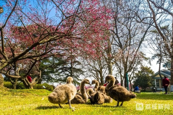 春风三月,南京玄武湖梅花迎来最佳观赏期,今天的玄武湖迎来了一批特殊的“游客”,黑天鹅宝宝们也来组团赏梅了!其中还有6只是昨天刚刚破壳而出的的哦!