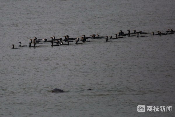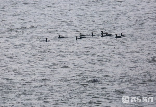 南京江豚水生生物保护协会志愿者武家敏说,江豚围捕小鱼给小萌豚崽吞食, 引得鸬鹚来争抢大约有28天之久。看来开展长江大保护和长江10年禁捕渔后,南京真是成效明显。随着环境的改变,江豚将会越来越多,各类鸟儿也频现,并将成为南京靓丽的生态风景线。