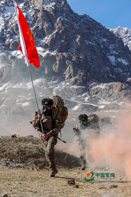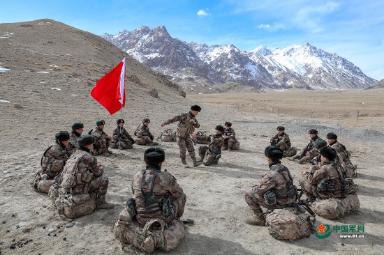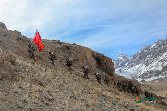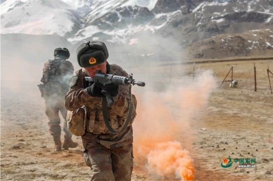 近日,新疆军区某边防团卡拉其古边防连在海拔4000多米的野外地域,进行多课目强化训练,在复杂生疏环境中,锤炼战斗技能。