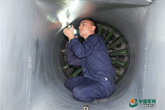 机务人员检查发动机进气道。高宏伟 摄