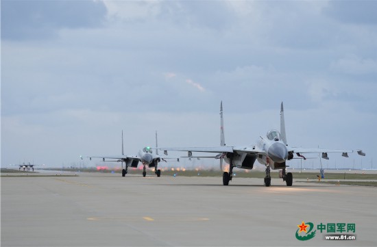 近日,海军航空兵某旅数架战机接力出动,直插云霄,两两编队飞向不同预定训练空域,一场跨昼夜飞行训练正式拉开战幕。