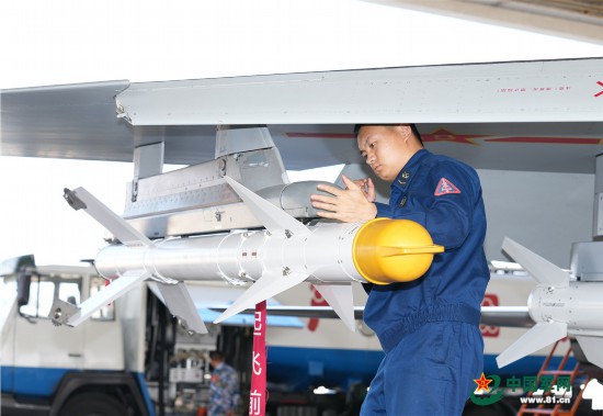 机务人员挂弹。高宏伟 摄