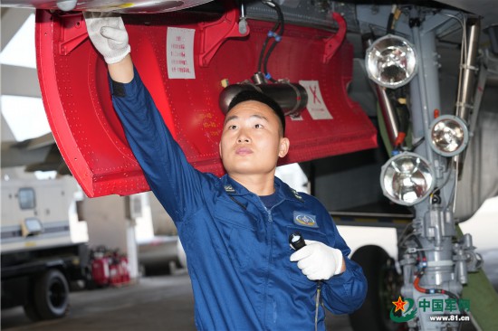 机务官兵精心检查维护战机。高宏伟 摄