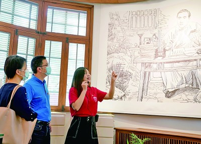 复旦大学《共产党宣言》展示馆里,党员志愿者在为观众讲解。新华社发