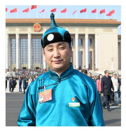 2019年全国两会,我见到总书记时说“总书记您好”,又用蒙语说了一遍“总书记赛白努”,抱着胸脯敬了个礼。