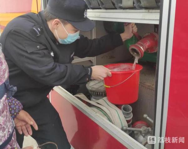 然而,听到老人的连声感谢,民警突然想到,管网改造破土面积大,耗费工时较长,一车水只能解决一会的用水难题。于是,接下来的两天,鲁垛派出所联合消防站,每天往返10公里外的陶林村两次,定时定点为群众接连送去5次生活用水,累计供水量12吨。