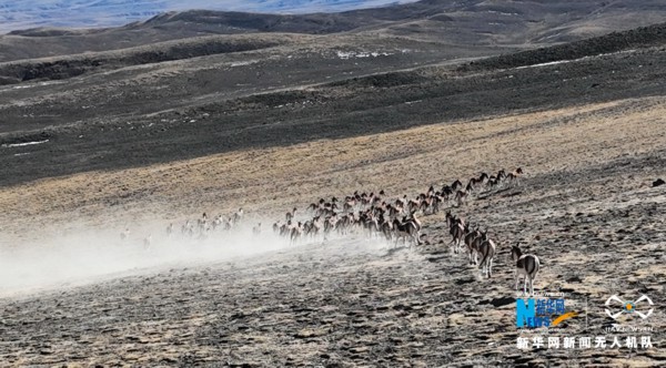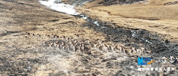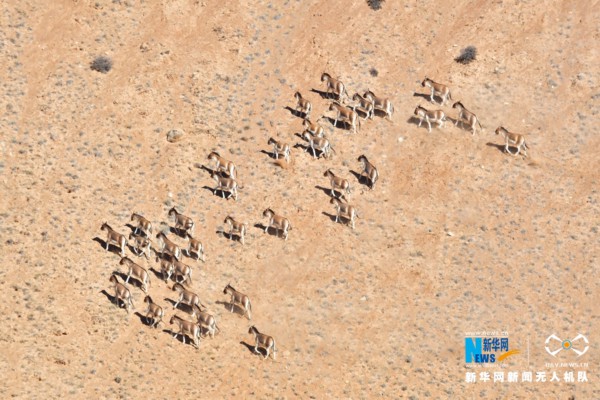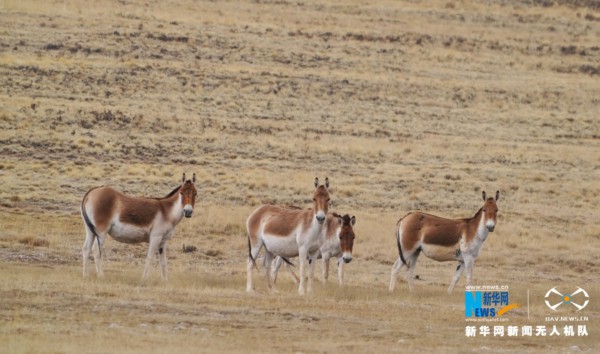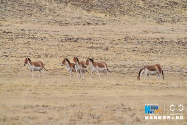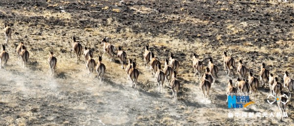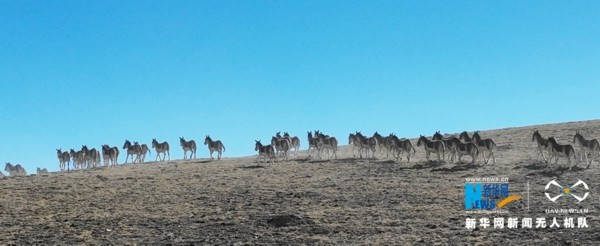 这是近日在甘肃省张掖市肃南裕固族自治县祁丰藏族乡禁牧区拍摄到的大种群藏野驴。新华网发 武雪峰 摄 飞手 安维斌