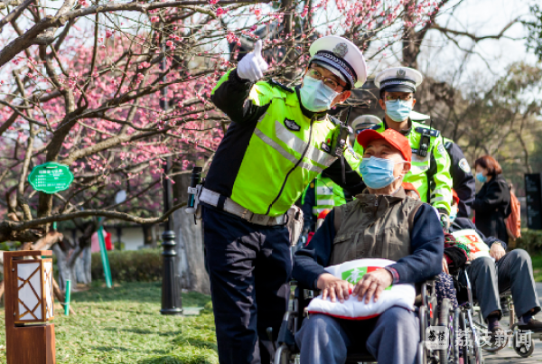 “太谢谢你们了,每年你们都来看我们,你们交警就是我们的亲人呀!”为进一步弘扬雷锋精神和“奉献友爱互助进步”志愿服务精神,在第59个学雷锋日到来之际,交警支队天宁大队文化宫中队、中山门中队联合党小组主动对接红日养老院,于3月4日上午带老人们去红梅公园观赏梅花,老人们对交警赞不绝口。中队与红日养老院结对开展活动8年来,交警们每年3、4月份都陪着老人们一同逛公园,共同感受常州美丽家园的共建成果和共享美好生活的幸福体验。