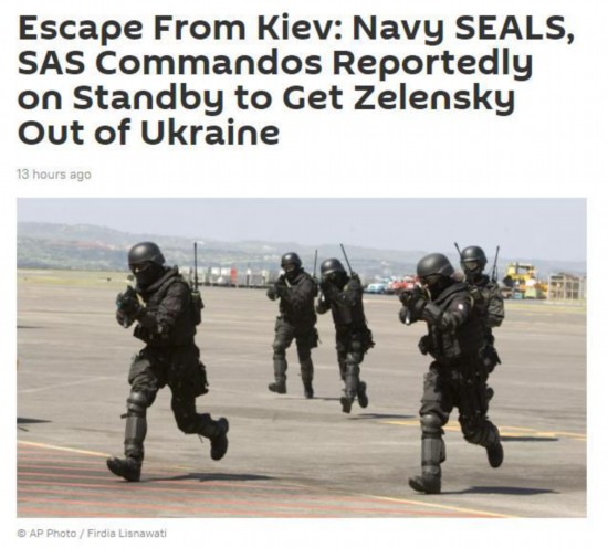 俄罗斯卫星通讯社6日援引据英国《太阳报》消息报道称,知情人士透露,由150名美国海豹突击队队员和70多名英国空军特种部队成员组成的一支精英突击队,目前正驻扎在立陶宛的一处基地,他们在筹划执行一项行动——将乌克兰总统泽伦斯基从乌克兰带走。