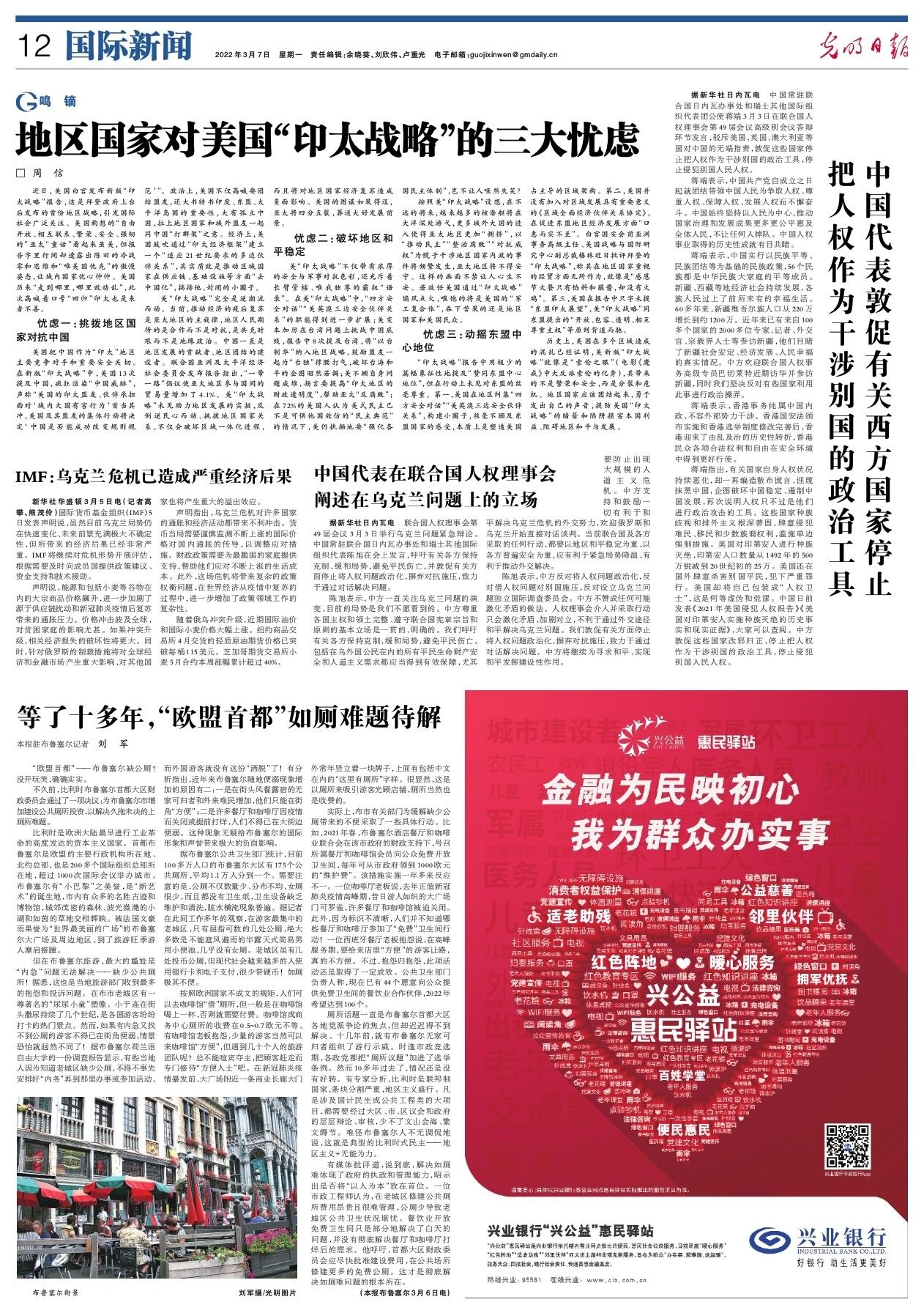 美“印太战略”不仅带有浓厚的安全与军事对抗色彩,还充斥着长臂管辖、唯我独尊的霸权“语录”。在美“印太战略”中,“四方安全对话”“美英澳三边安全伙伴关系”的职能得到进一步扩展;美变本加厉在台湾问题上挑战中国底线,报告中8次提及台湾,将“以台制华”纳入地区战略,鼓励盟友一起为“台独”撑腰打气,破坏台海和平的企图昭然若揭;美不顾自身问题成堆,扬言要提高“印太地区的财政透明度”,帮助亚太“反腐败”;在72%的美国人认为美式民主已不是可供他国效仿的“民主典范”的情况下,美仍执拗地要“强化各国民主体制”,岂不让人哑然失笑?