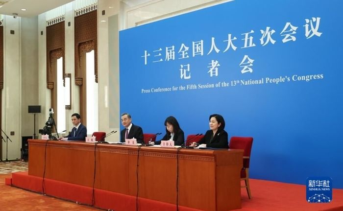 3月7日,十三届全国人大五次会议在北京人民大会堂新闻发布厅举行记者会,邀请国务委员兼外交部长王毅就“中国外交政策和对外关系”相关问题回答中外记者提问。为有效防控疫情,共同维护公共卫生与健康,记者会采用网络视频形式进行。 新华社记者 殷刚 摄