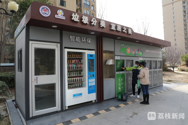 负责运营的宿迁明日环境管理有限公司常态化为居民免费注册智能IC卡,免费赠送垃圾分类双联桶和可降解的垃圾袋,帮助指导居民投放生活垃圾,居民按照分类投放,刷卡选择要投放的种类,设备系统会自动打开、自动称重,环保屋定时投放,居民每天在固定时间内正确投放,会获得积分,所产生的积分可以免费兑换居民日常所需的生活用品。随着这些新型垃圾分类设备的出现,居民的生活变得更干净有序。