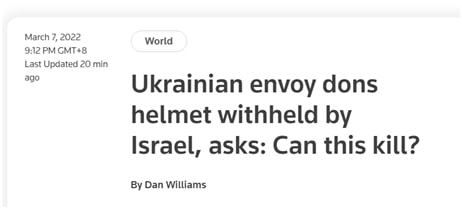 据路透社消息,乌克兰驻以色列大使叶夫根 科尔尼丘克7日公开对以色列没有对乌提供一些在乌克兰看来只是“防御性装备”的举动表示失望,他在新闻发布会上戴着一个头盔质问:“请告诉我,你怎么用这东西杀人?”