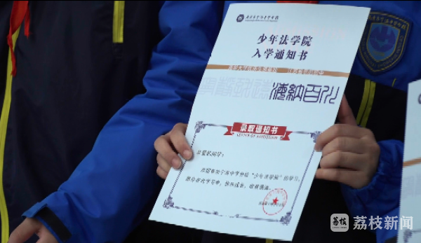 今天,由南京鼓楼区21家单位组成的关心下一代工作的爱心联盟,在宁海中学设立的“少年法学院”正式揭牌,现场给第一批入学的同学颁发了录取通知书。南京市宁海中学分校初一学生张舒妍拿到录取通知书后,说:“法律对我们来说是陌生的,现在我们对它的了解也只是冰山一角,这一课程的开展可以拓宽我们的视野,丰富自己的人生,也为我们今后的生活奠定了基础,这一课程的开展有利于我们形成良好的世界观和责任感的。”