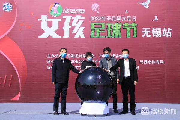中国国家女子足球队主教练水庆霞,无锡市委常委、江阴市委书记许峰,无锡市副市长秦咏薪,江苏省体育局副局长刘彤共同启动活动。江阴市领导杭成、钱晴参加活动。