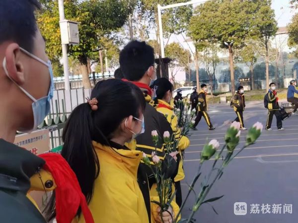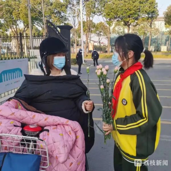 欢迎“女神”的打开方式千千万万,扬州梅岭中学教育集团竹西中学的学生志愿者捧着一束束含苞待放的康乃馨“挡”在了校门口,把清晨的第一份温馨祝福送给来上班的每一位女老师,给“女神”们一个意外的惊喜和感动。