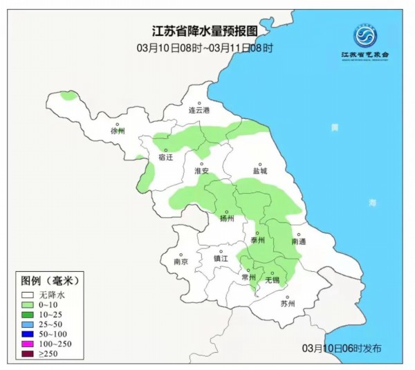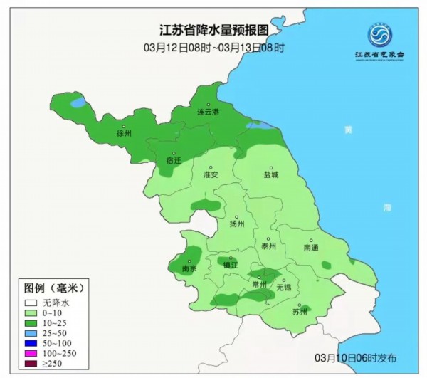 另据@江苏气象预报未来三天全省气温继续回升局部地区有雨