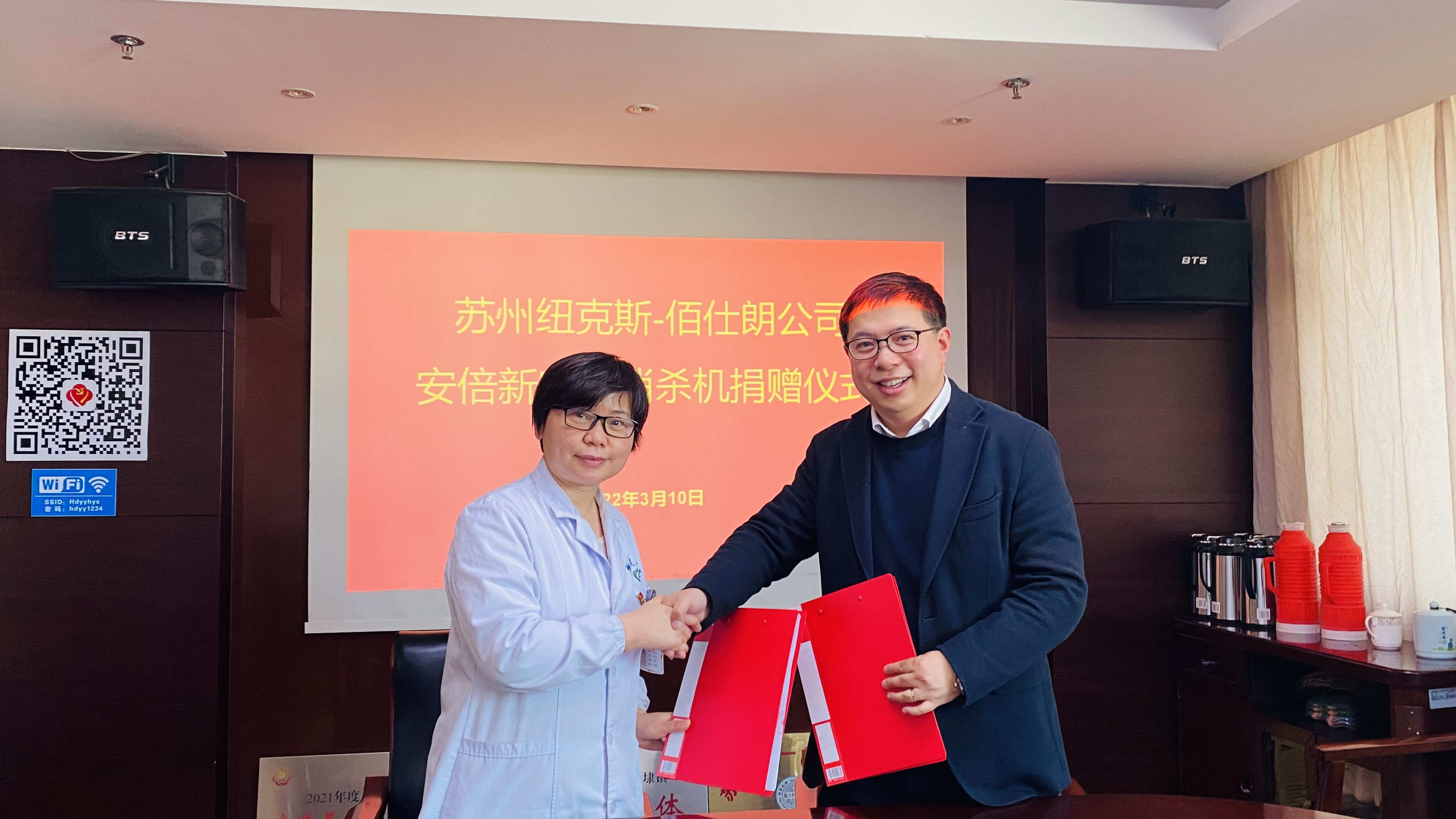 当前,国内外疫情防控形势严峻复杂。医院作为疫情防控的重点场所之一,有效做好相关环境物表和空气消毒,为患者和医护人员提供安全清洁的环境,显得尤为重要。位于相城区的苏州佰仕朗智能科技有限公司加大研发投入、强化技术攻关,研发生产了一款杀菌兼照明的医用级空气消杀产品——安倍新空气消毒机,为疫情防控贡献科研力量。近日,佰仕朗向相城区第二人民医院捐赠消毒机共计55台,价值19万元,该批产品将用于医院发热门诊,助力医院疫情防控工作。