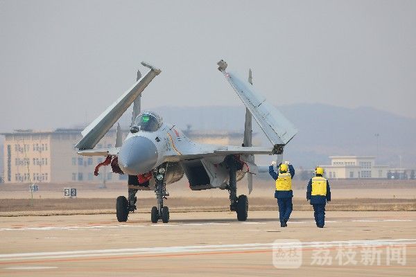 暖机、展机翼、滑行……身着“黄色马甲”的引导员十几个引导动作一气呵成。飞行员在引导员的引导下检查座舱仪表,展开机翼,战机缓缓滑行。