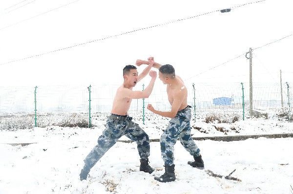 开展格斗基础恢复训练前,警卫专业教员组织战士们充分热身、对格斗基本动作逐个复习。随后战士们开展雪浴、格斗基础、擒拿技术、徒手哨兵反袭击技术等课目训练。