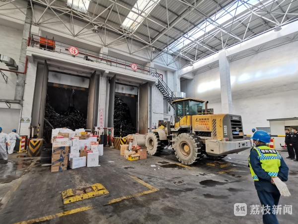 销毁现场,随着铲车的倾倒和铁臂的抓举,成箱的假私卷烟被送进焚烧炉中燃烧发电,实现低碳节能、变废为宝的绿色循环利用。“不同于传统的焚烧、填埋,我们将这些假私卷烟用于发电,更加绿色、低碳、环保。”公司相关负责人介绍表示,此次焚烧的假烟可产生1121度电。