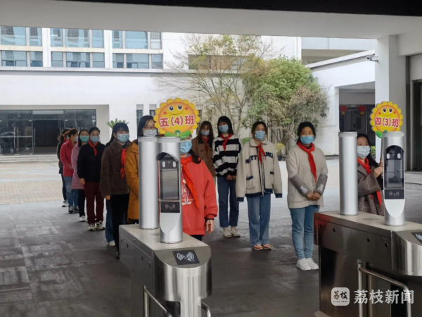 为了实行分批错峰放学,学校德育处特别制作了“暖心接送卡”,利用颜色来区分年级,分时错峰接送。放学时,学生有序排队离校,家长在校外指定区域等候。未能及时接走的学生在临时等候区等候,在保安指导下有序离校。