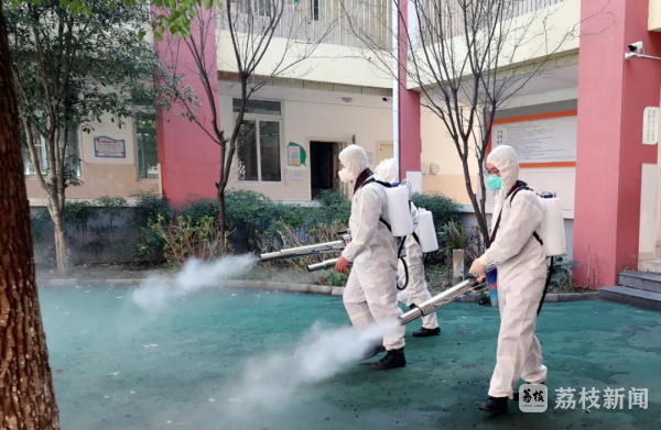 防疫人员穿梭在校园的每一个角落,严格按照卫生消毒管理的标准规范操作,“地毯式”消杀,对学校教学楼各教室、办公室、走廊、食堂等公众场所和重点区域,实施了反复、全面的消杀,为学生返校、教职工返岗、学校复学做好充分准备。