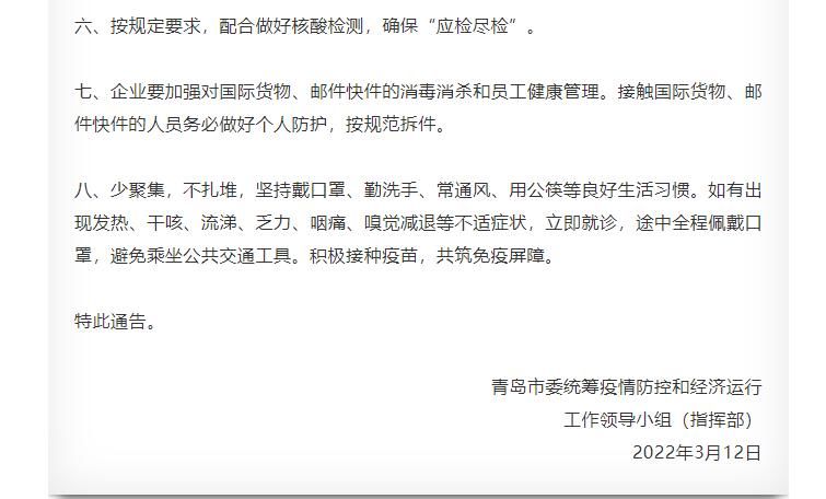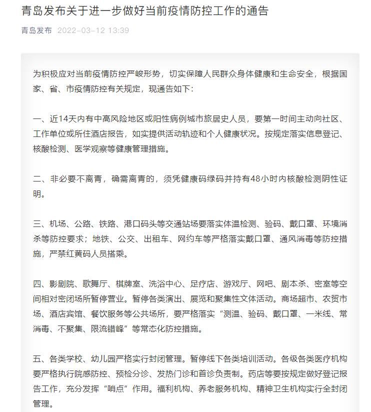 荔枝新闻讯 据“青岛发布”微信公众号消息,青岛发布关于进一步做好当前疫情防控工作的通告。全文如下: