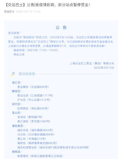 荔枝新闻讯 3月13日,上海交运巴士客运(集团)有限公司微信公众号发布公告,内容如下: