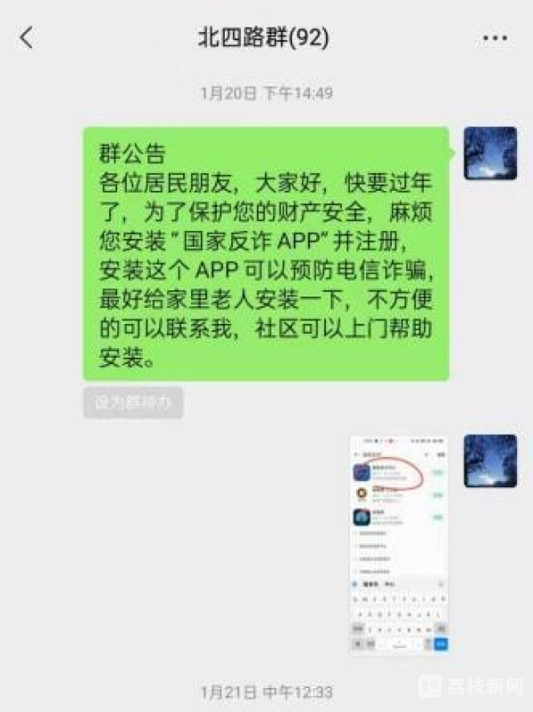 “麻烦您安装‘国家反诈中心’APP并注册,最好给家里老人安装一下,不方便的社区可以上门安装。”在崇明街道的一个社区网格群里,社区工作人员通过微信平台,向居民推广下载“国家反诈中心”APP,并附上了下载教程。对于不熟悉智能手机操作的老年人,社区还安排人员上门服务,切实提升群众对反诈APP的认可,提升自主安装使用率。