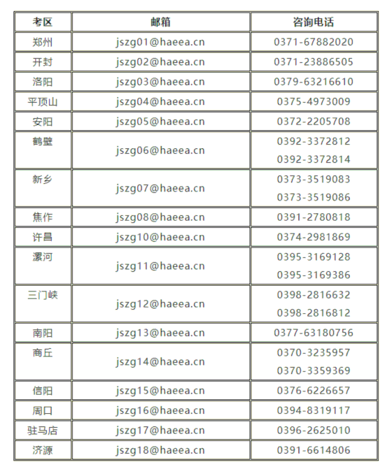 五、各考区邮箱