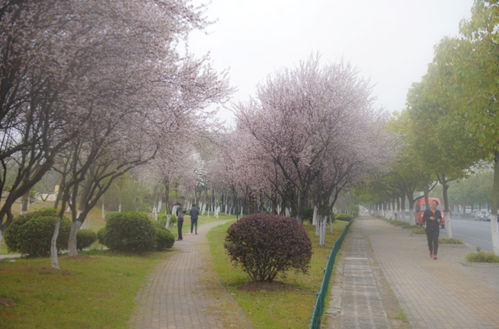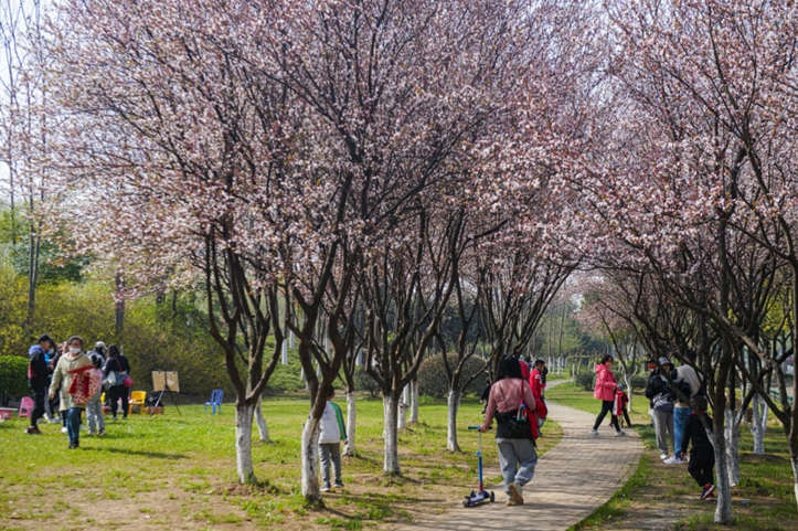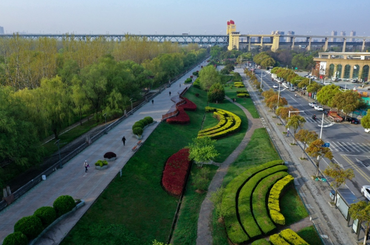 从长江大桥下的滨江风光带,到5公里长的滨江大道上,处处都是五彩缤纷春花烂漫,也处处都有踏春赏花的游客。