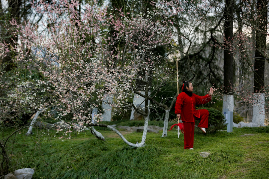 春到江南,南京长江大桥北堡下五彩斑斓的枝叶,以及一树一树春花盛开的美景,吸引了众多游客和周边居民。