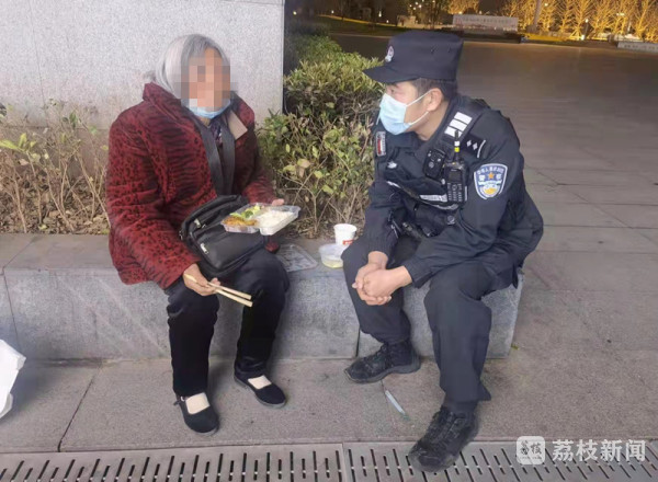 老人没有手机,只有一张写着儿子电话号码的纸条,民警便帮助其联系家属。老人儿子了解情况后十分焦急,主动提出要包车来南京接母亲回家。民警让老人的儿子不要太着急,在他们到来前会一直陪伴着老人的。