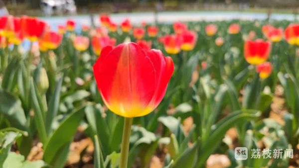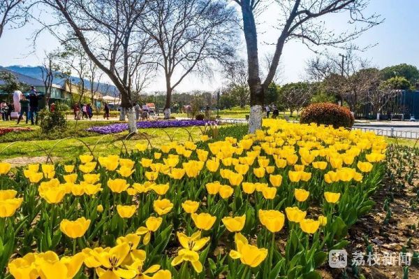 目前,玄武湖景区约有郁金香13万株,32个品种,目前开花的品种包括甜点、红娘、阳光王子、热情鹦鹉等。