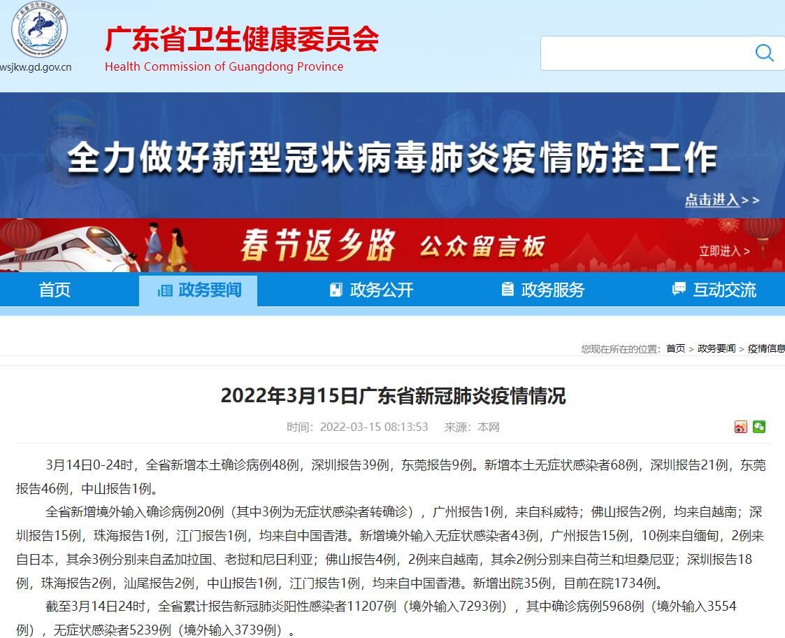 荔枝新闻讯 据广东省卫健委网站消息,3月14日0-24时,广东省新增本土确诊病例48例,深圳报告39例,东莞报告9例。新增本土无症状感染者68例,深圳报告21例,东莞报告46例,中山报告1例。