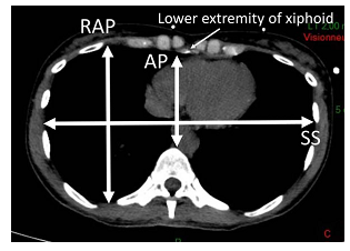该团队创新性提出GW/RAP(移植物重量与受体右侧前后径比值)联合GRWR(移植物与受体体重比)作为LFSS的预测公式,其优势在于:①GW/RAP考虑到受体右上腹前后径与移植物的个体化差异(见下图);②GRWR除了具有预测LFSS的作用,还是临床上用于预测小肝综合征(SFSS)的最重要指标,从而在术前杜绝供肝裁剪过度的风险;③以上两个参数测量简便,不依赖于供体的影像学检查,保证了供体在器官维护过程中的安全性。