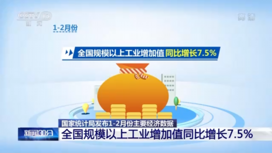 工业生产加快,1—2月份,全国规模以上工业增加值同比增长7.5%,高技术制造业和装备制造业增势良好。