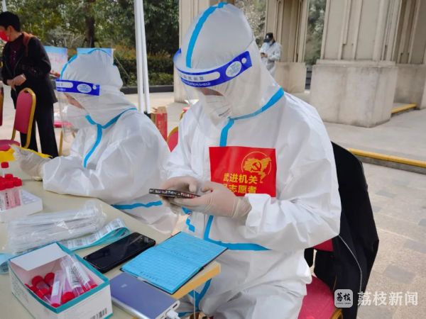 在常州武进区,市场监管部门积极响应武进区委组织部号召,1小时内火速组建了一支30人的党员志愿者服务队前往府南社区等地。早上六点,志愿者们就已到岗,全力协助全员核酸检测。