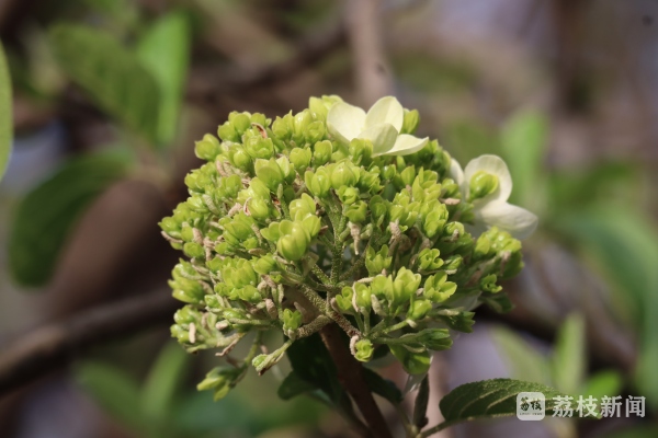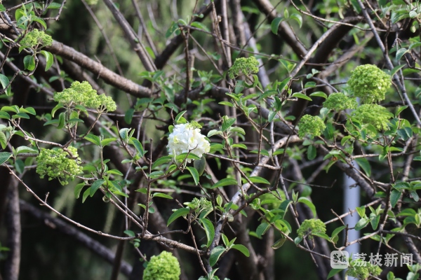 3月15日在明故宫遗址公园里看到,午朝门部分木绣球悄然开放,放眼望去,部分青绿,部分洁白。仔细看,有的花瓣尚未完全张开,还是淡淡的绿色,个别花球正酝酿着绽放开始逐渐泛白,一部分还在含苞待放,在微风的吹拂下,楚楚动人,即将接力下一波的赏花热潮。