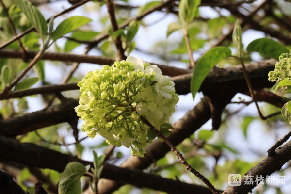 在南京花季桃红柳绿的缤纷色彩中,绣球花淡雅的白给这个春天带来不一样的美丽。