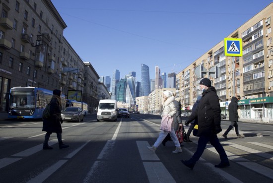 3月9日,在俄罗斯首都莫斯科,市民穿过一条马路。新华社记者 白雪骐 摄