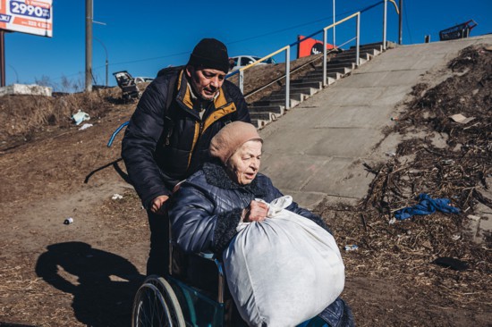 3月11日,人们在乌克兰基辅州伊尔平通过人道主义通道撤离。新华社发(迭戈·埃雷拉 摄)