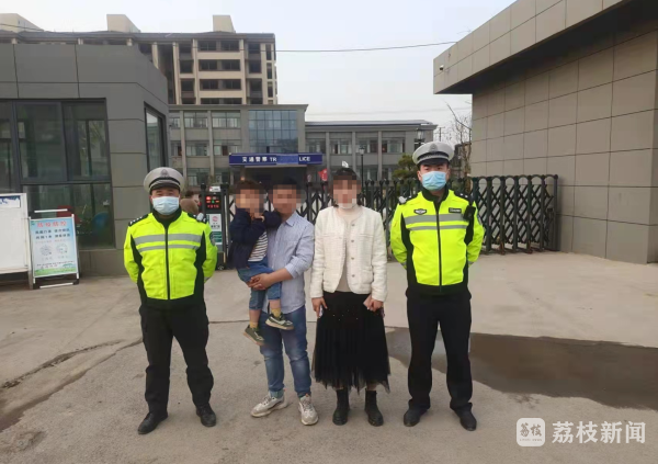 3月14日15时许,徐州市铜山交警大队机场路中队民警李健、陈思锐巡逻至张集老街鱼市路口时,发现一个三岁男孩在道路上乱跑,并无家长看护,十分危险。