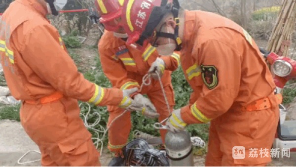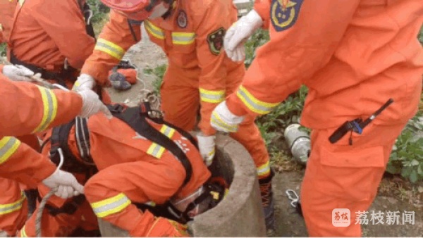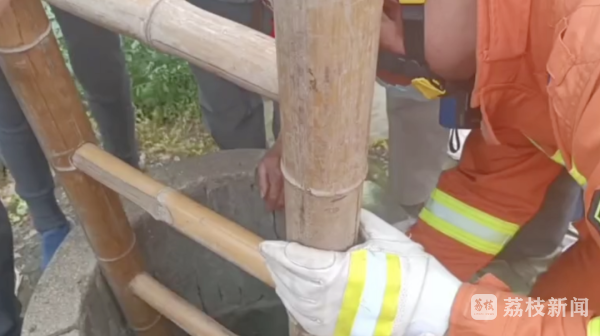 为给救援腾空间,消防救援人员拿竹竿替换了梯子。井底空气稀薄,为防止老人缺氧昏厥,消防救援人员将空气呼吸器,送至井下,给老人输送氧气。