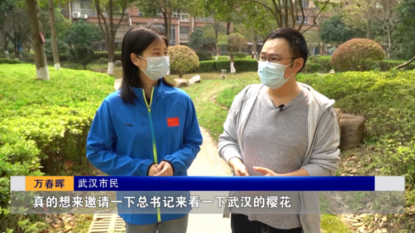 武汉市民万春晖:“没有一个冬天不会过去,没有一个春天不会到来,你看现在刚好就是春天,樱花都已经开了,在条件允许的情况下,真的想邀请一下总书记来看一下武汉的樱花。”