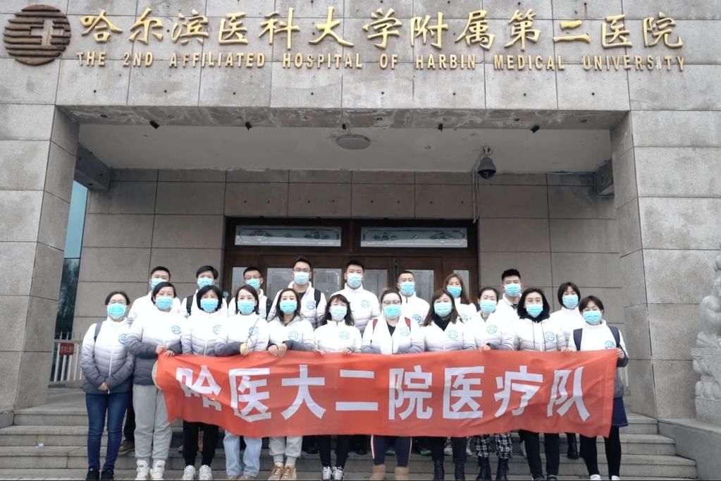 哈尔滨医疗队成员出发前合影。(受访者供图)