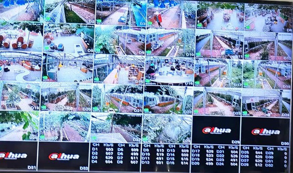 温室内,一片片翠绿的葡萄新叶顺藤生长,一枝枝蔓藤盘绕在一根根钢丝绳上,一串串似“豆粒”大的葡萄悬挂枝头。只见一株葡萄树下面有一个看不起眼的仪器,一组传感器一头插入泥土中,一头连接一个显示屏,屏幕上显示出此时温室内土湿、空气温度、光照度等8项数据。顺着传感器往上看,还有一个枪机,正对准一株葡萄树进行视频监控。在这里,东海县农业物联网信息中心一共布置了24个农业物联网数据采集点,设有14个定点摄像头,2个全景摄像头,全天候对葡萄生长环境进行监测。专家们可远程通过上传的数据,结合当下葡萄的生长特性,进行科学分析,指导农场主科学管理,提高果品优质率。
